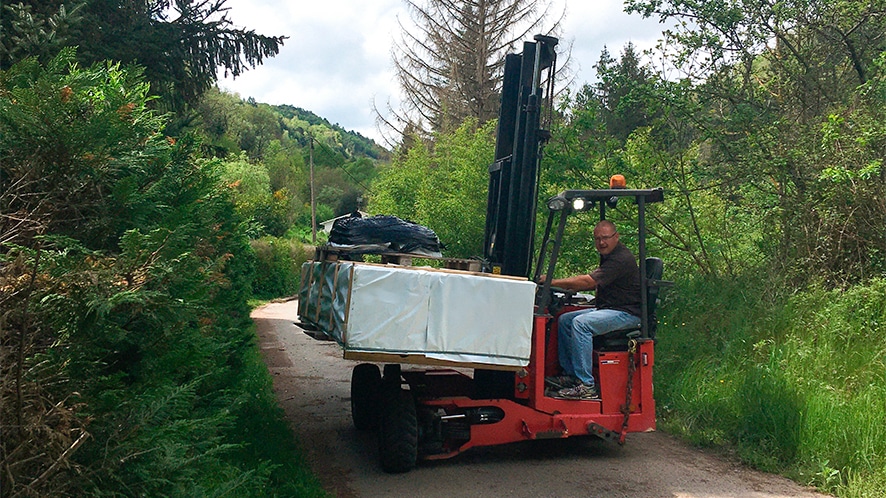 On a construction site, time is precious and hazards are numerous. The on-board forklift enables autonomous unloading and reduces downtime.