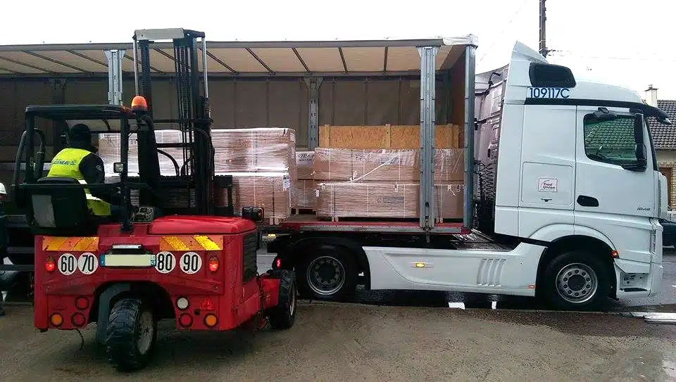 In France or Europe, delivery with a truck mounted forklift ensures the safe transport of your heavy and bulky items, from manufacturer to consumer.